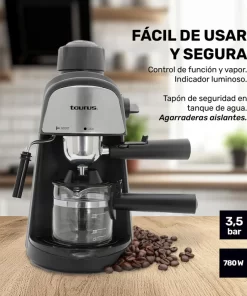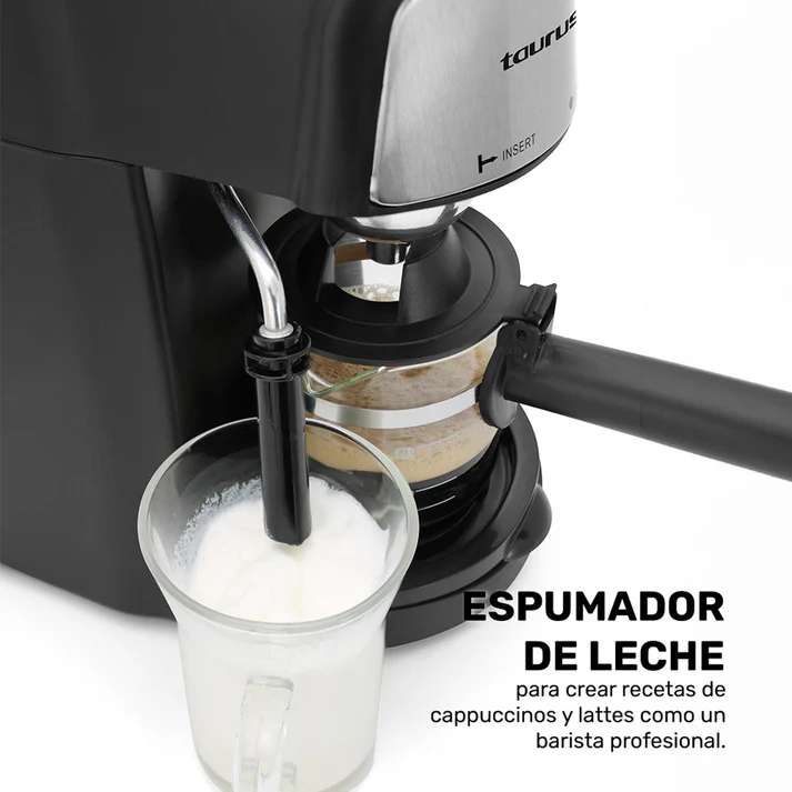 Descubre la cafetera VIENA de Taurus, perfecta para preparar tus cafés favoritos como cappuccinos y lattes con un toque profesional gracias a su espumador de leche. Con una potencia de 3,5 bares, garantiza un sabor intenso y una espuma cremosa en cada taza. Además, su diseño seguro incluye un tapón de seguridad y agarraderas aislantes, ideal para un uso sin preocupaciones. Fácil de manejar, cuenta con control de función, vapor y un indicador luminoso. Incluye una jarra de vidrio de 240 ml, ideal para medir y servir con precisión. ¡Convierte tu cocina en una cafetería con VIENA!
